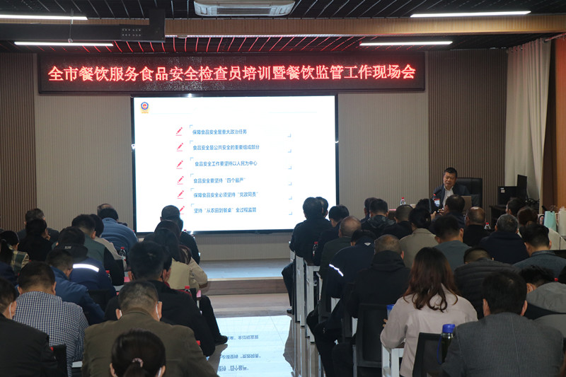 為進一步豐富餐飲服務食品安全檢查員業(yè)務知識,提升全市餐飲環(huán)節(jié)食品安全監(jiān)管水平,棗莊市市場監(jiān)督管理局根據(jù)2023年餐飲監(jiān)管工作計劃,于11月8日,在臺兒莊古城學校召開全市餐飲監(jiān)管工作暨餐飲服務食品安全檢查員培訓會議,市、區(qū)兩級局分管局長、餐飲科全體人員、全市餐飲服務食品安全檢查員參加。會議由市市場監(jiān)管局副局長張衍耀主持;臺兒莊區(qū)委常委、副區(qū)長孫作偉致辭,并介紹建設“食安臺兒莊”的經(jīng)驗和做法;山東省市場監(jiān)管局餐飲處一級調(diào)研員遲玉聚博士,作《深刻學習領會習近平總書記重要論述精神努力守住食品安全底線》主題報告。