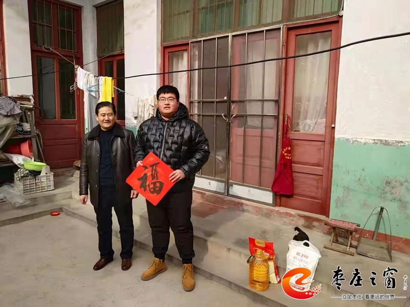 2022年1月28日,薛城區(qū)政協(xié)副主席、工商聯(lián)主席姚磊帶領(lǐng)工商聯(lián)領(lǐng)導班子成員分別到周營、鄒塢、常莊等鎮(zhèn)村開展春節(jié)前“送溫暖”走訪慰問7家?guī)头鰬艋顒,為他們送去愛心企業(yè)家王興亮選購的米、油、面。姚磊還專門送了自己書寫的《!纷执郝(lián),并向幫扶戶送上節(jié)日問候和新春祝福。